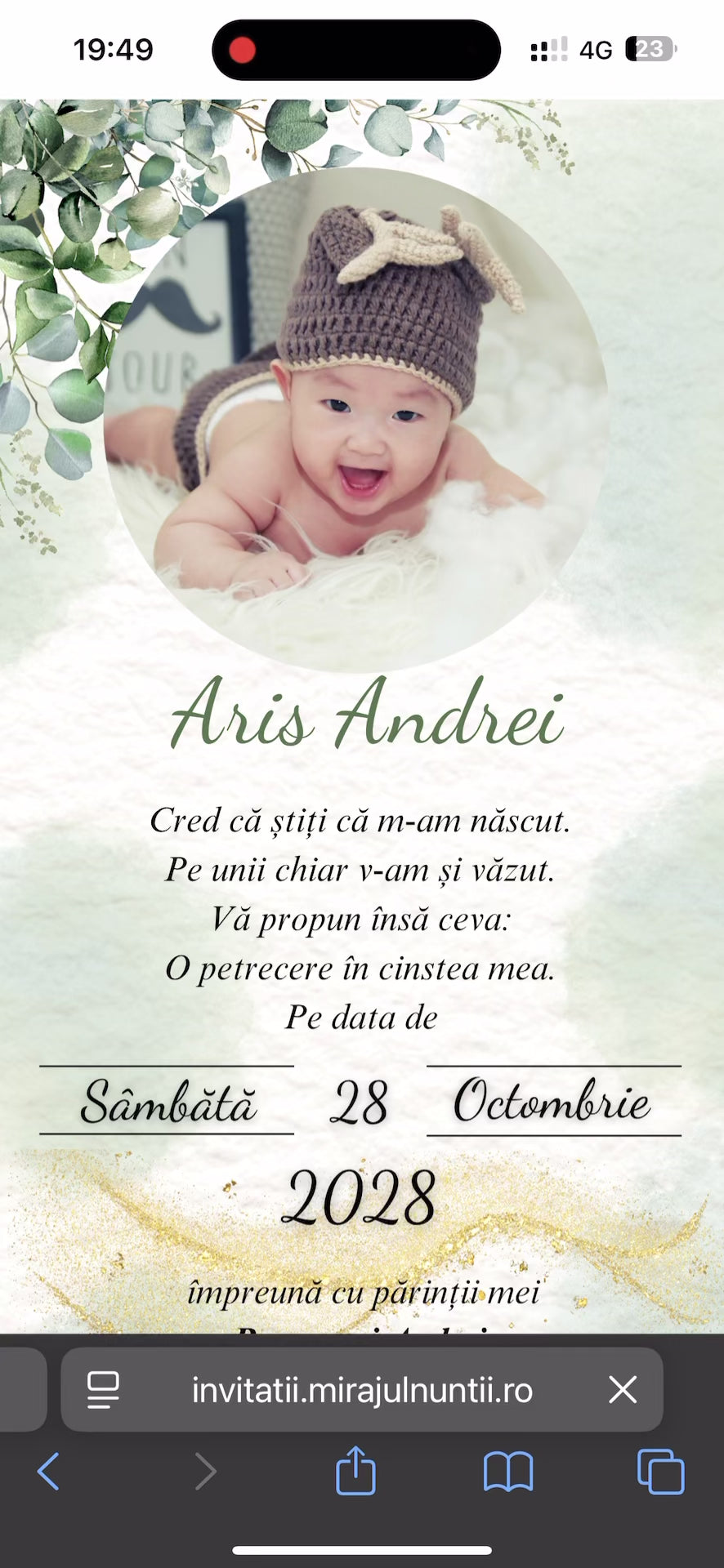 Invitația online este o pagină web personalizată, modernă și elegantă.