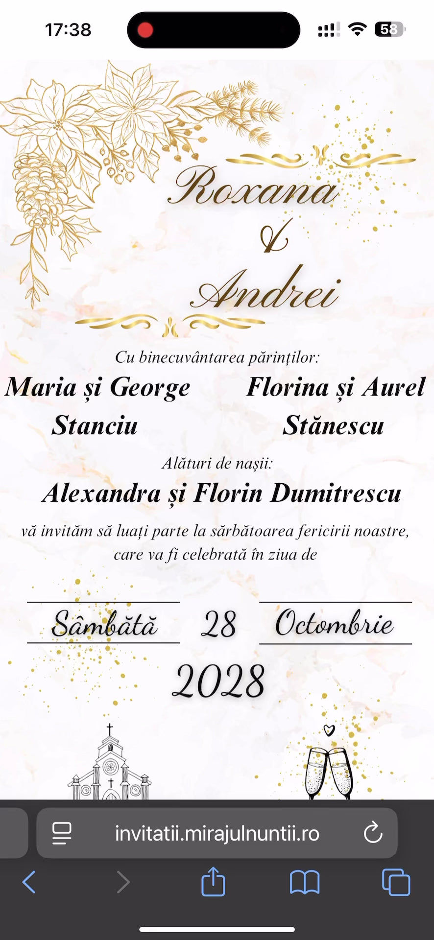 Invitația online este o pagină web personalizată, modernă și elegantă.