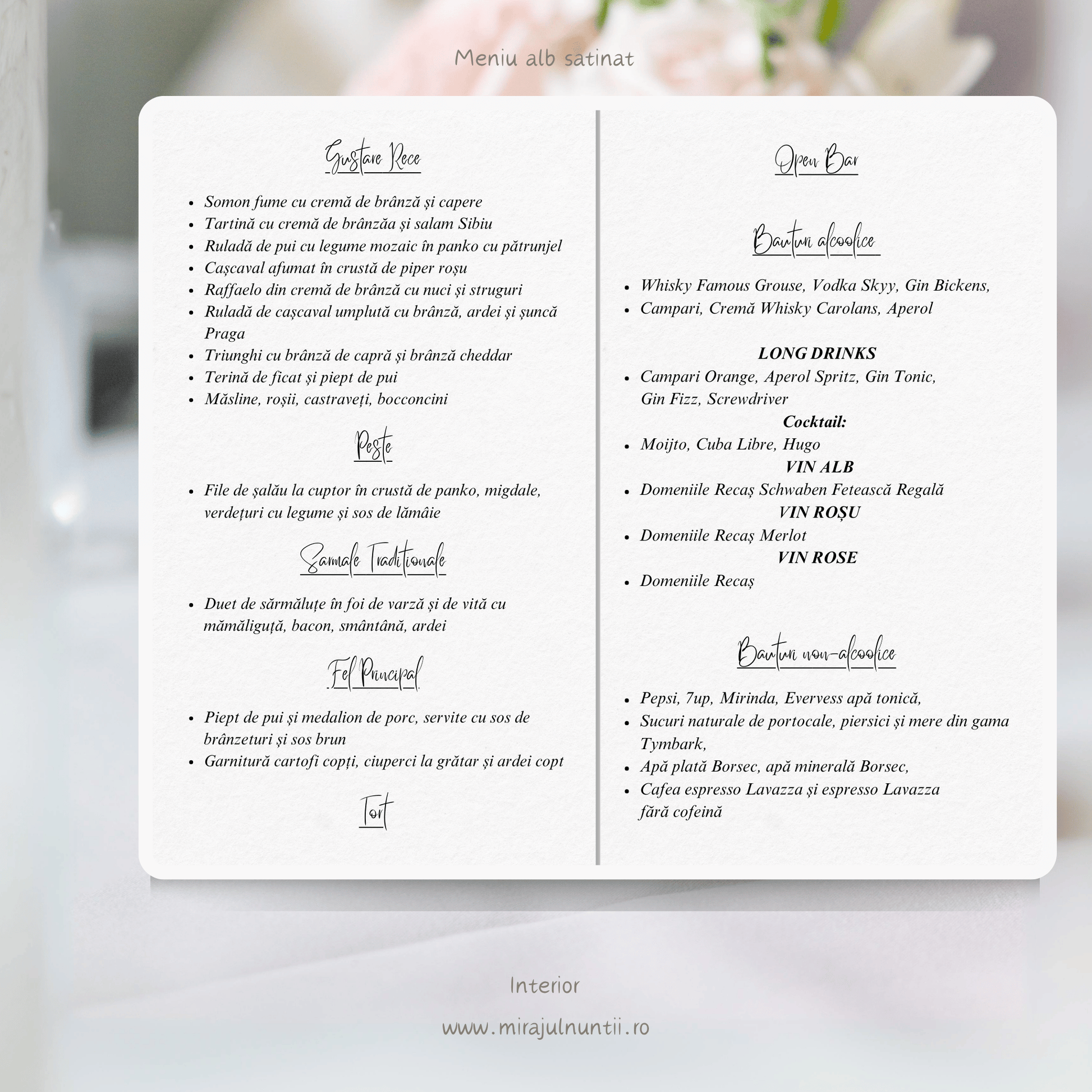 Meniu tip carte cu grafică personalizată NUNTĂ