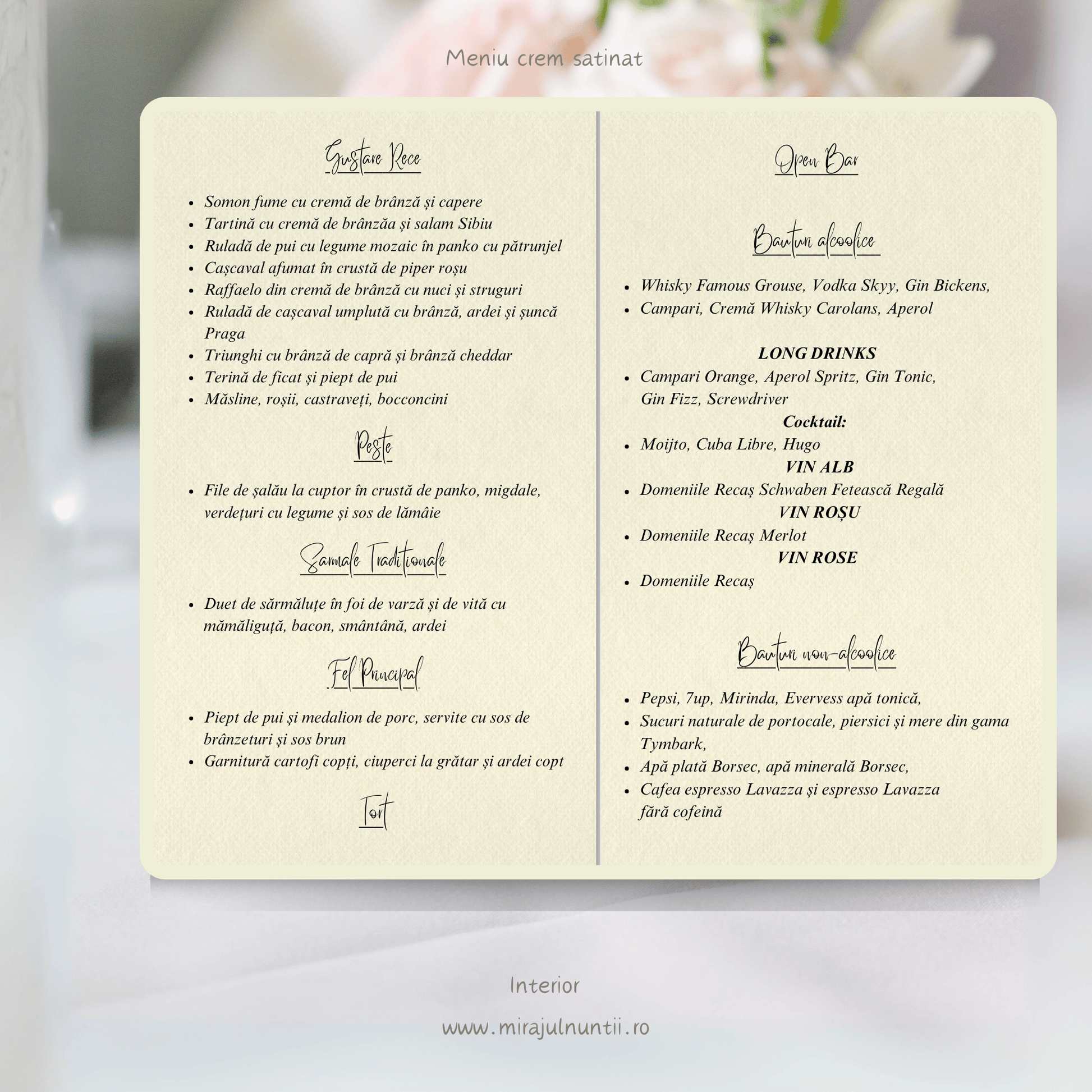 Preț redusMeniu nunta pliat tip carte cod Miraj 5740